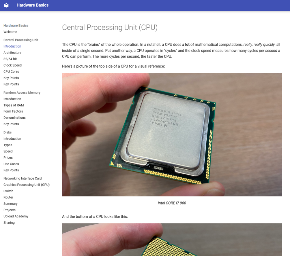 A link to our Hardware Basics micro-course to read in your web browser